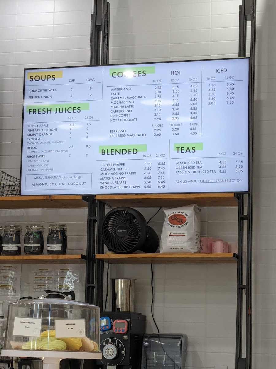 This menu accommodates those seeking breakfast items, casual light meals, and snack options, with dishes that can be enjoyed for quick orders or more relaxed dining. Various coffee, tea, and beverage choices accompany the food selections, although specific drink items are not listed here.